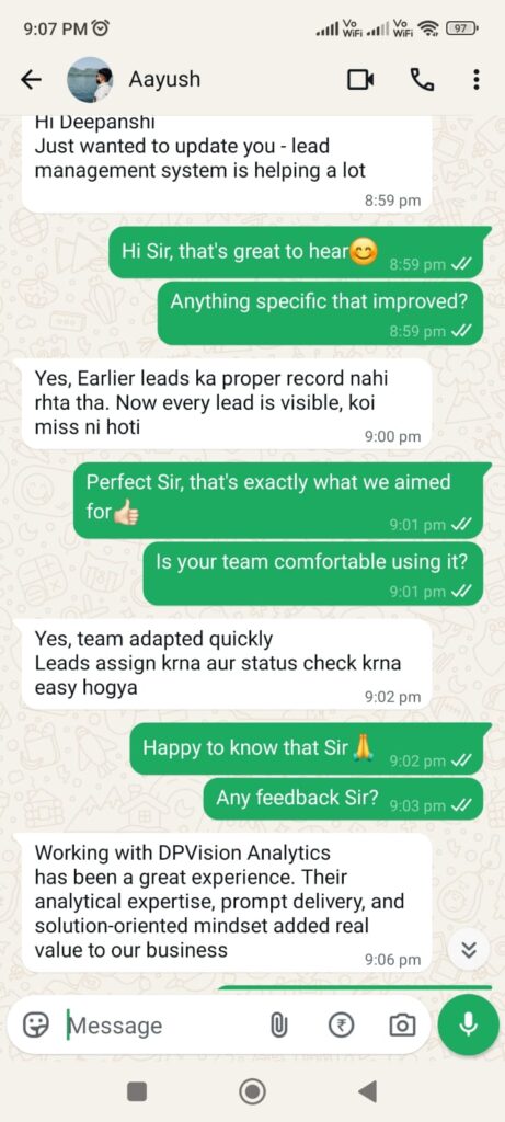 In this consultation, we first understand your business model and current processes. Then we show you a live demo of how CRM, ERP, and automation can be structured for your business. The goal is to give you clarity and direction, not a sales pitch.